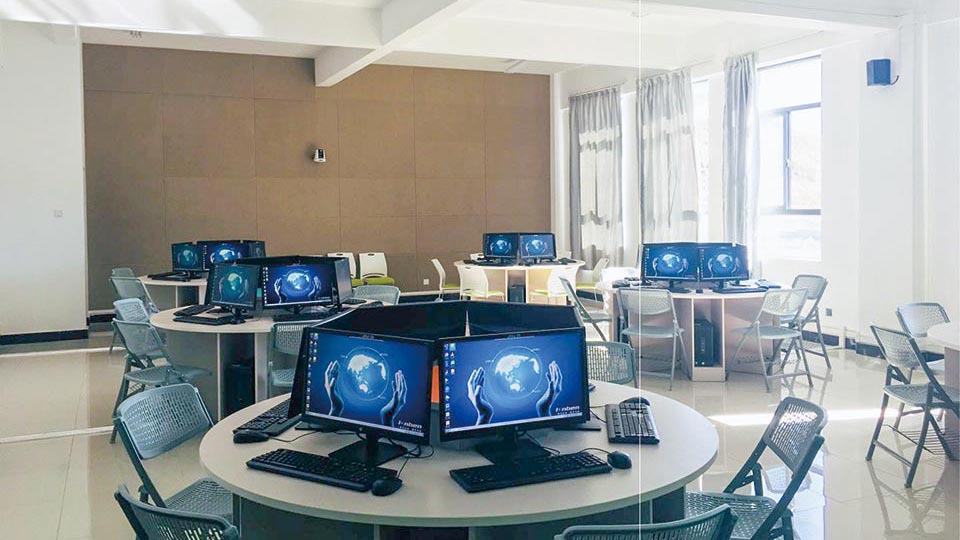 建設(shè)集控室,實現(xiàn)集中控制和管理:建設(shè)集控室,在集控室內(nèi)部署觀摩大屏、集中控制管理系統(tǒng)和導(dǎo)播系統(tǒng),在集控室中可通 過集控客戶端對實訓(xùn)教室進行集中管理,實現(xiàn)實訓(xùn)課程在線直播以及視頻資源的有效控制和管理。管理員可監(jiān)控實訓(xùn)室狀態(tài) 及遠程批量開關(guān)機;老師可通過集控客戶端對每間實訓(xùn)教室進行在線聽課。