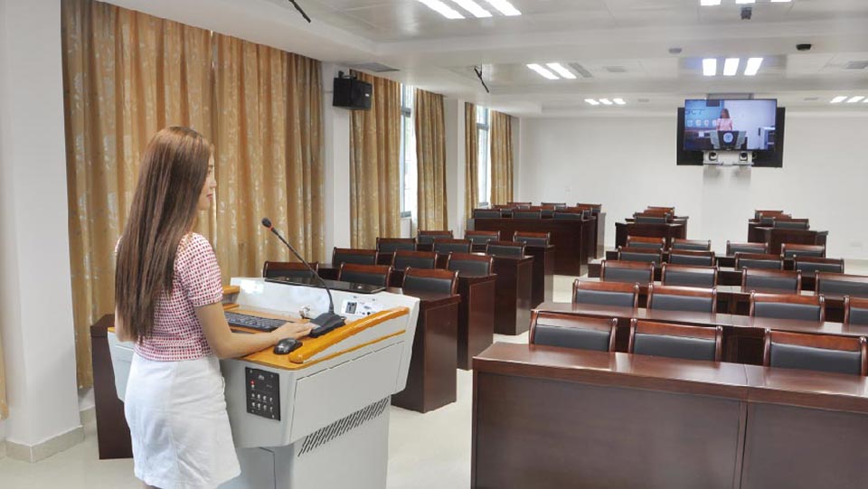 為了滿足教師專業發展的基本技能、教學能力、教育能力、教研能力與創新發展能力五個層級遞進的能力需求,奧威亞為肇慶學 院定制了14類特色功能室,包括:遠程交互室、教師口語技能實訓室、數碼音樂教育實訓室、教師形象設計室(金太陽音樂坊)、創 意教學研討室、墨香書畫坊、板書設計與簡筆畫實訓室、微課錄播室、微課制作室、教育信息設備實訓室、VR仿真實訓室、教師工作 室、教學設計實訓室、教師教學研討室。 部分特色功能室展示,如下:
