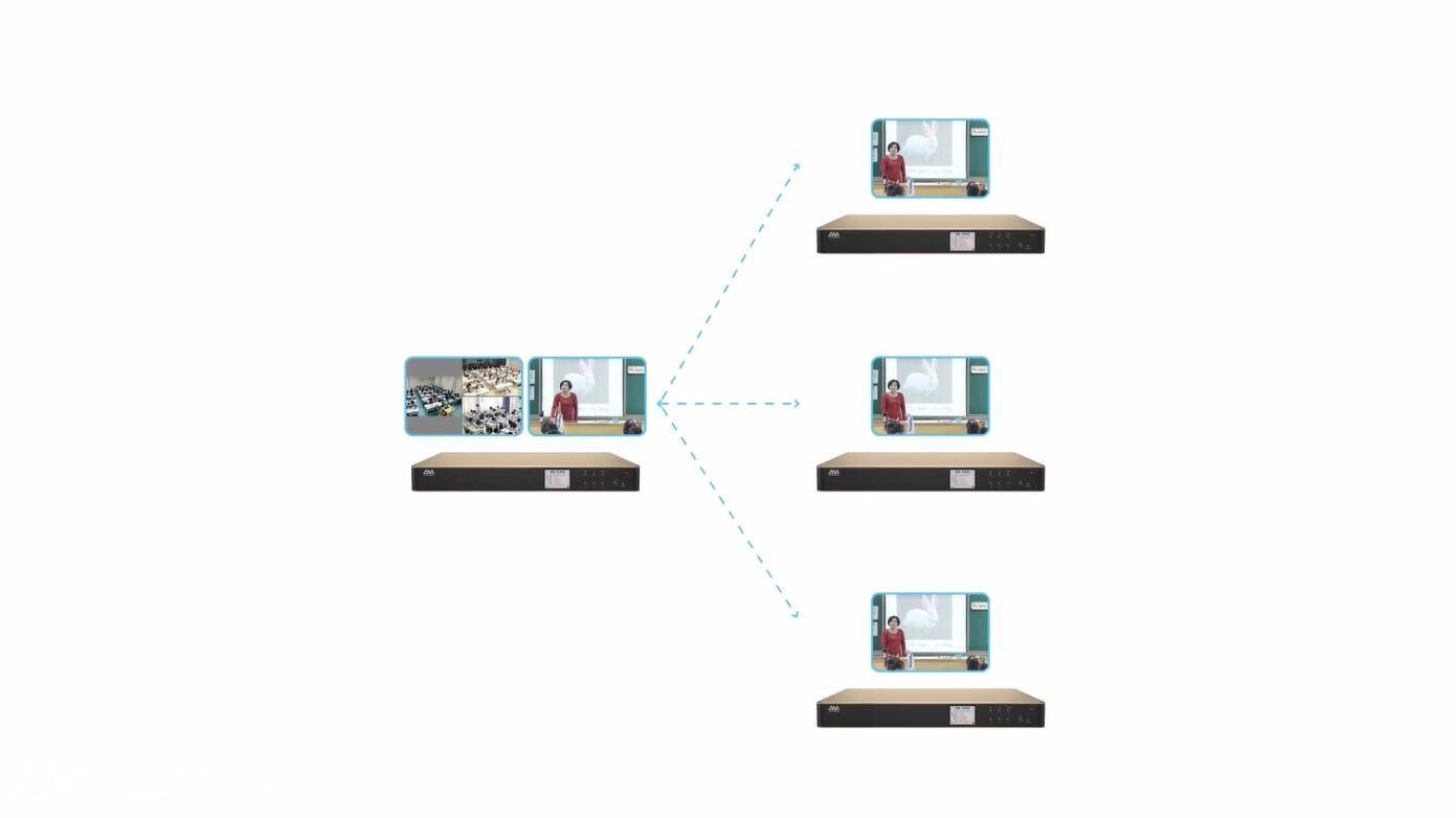 憑借強大的研發實力,今年,奧威亞推出教學點神器AE-A3M,并以此為核心打造專遞課堂建設與應用解決方案,開啟簡易教學交互新時代!區域內教育資源比較豐富的中心學校作為主講端,偏遠地區的多個教學點作為聽課端,構建“1+3”的專遞課堂教學模式。