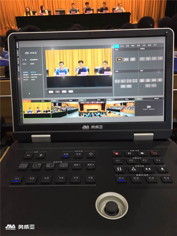 對于導(dǎo)播操作的問題,此次大會雖然由奧威亞的技術(shù)人員操作,但奧威亞在設(shè)計(jì)之初就已經(jīng)充分考慮到大多數(shù)老師并非專業(yè)導(dǎo)播人員的特點(diǎn),在操作設(shè)置上只設(shè)置最常用的核心功能實(shí)體鍵,普通老師也可快速上手,完成專業(yè)視頻資源的制作。