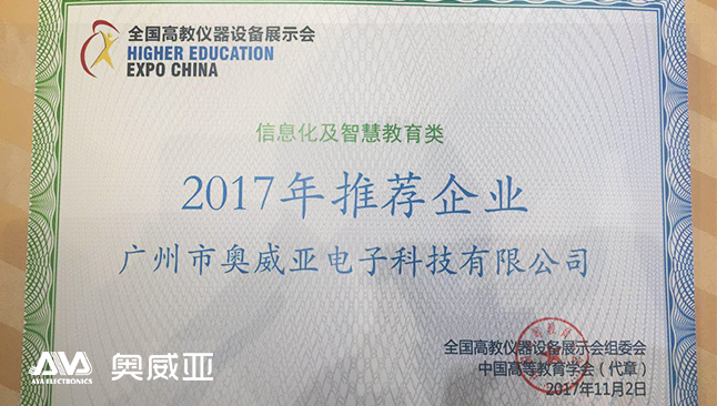 在不久前舉辦的第50屆全國高教儀器設備展示會上,奧威亞將又一行業大獎收入囊中!奧威亞榮獲由組委會、中國高等教育學會聯合頒發的信息化及智慧教育類“2017年推薦企業”。此次評選活動,在參展的649家企業中僅有50家獲評入選,奧威亞有幸位列其中,且是國內唯一一家入選的錄播企業。