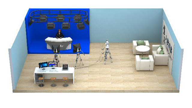 考慮到用戶的不同需求,我們設計了2種實現方式。當學校需要完成人物訪談、新聞發布、校長談話等實景拍攝的場景時,可以采用實景拍攝的方式。當想要完成譬如新聞播報、軍訓、校運會、校慶、電視比賽、名師大講堂等不同的場景時,學校可以采用虛擬摳像的方式實現。